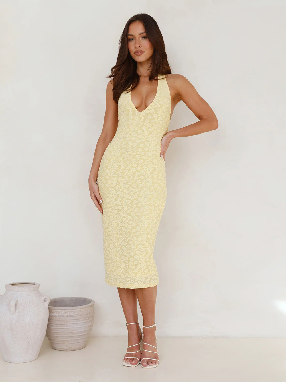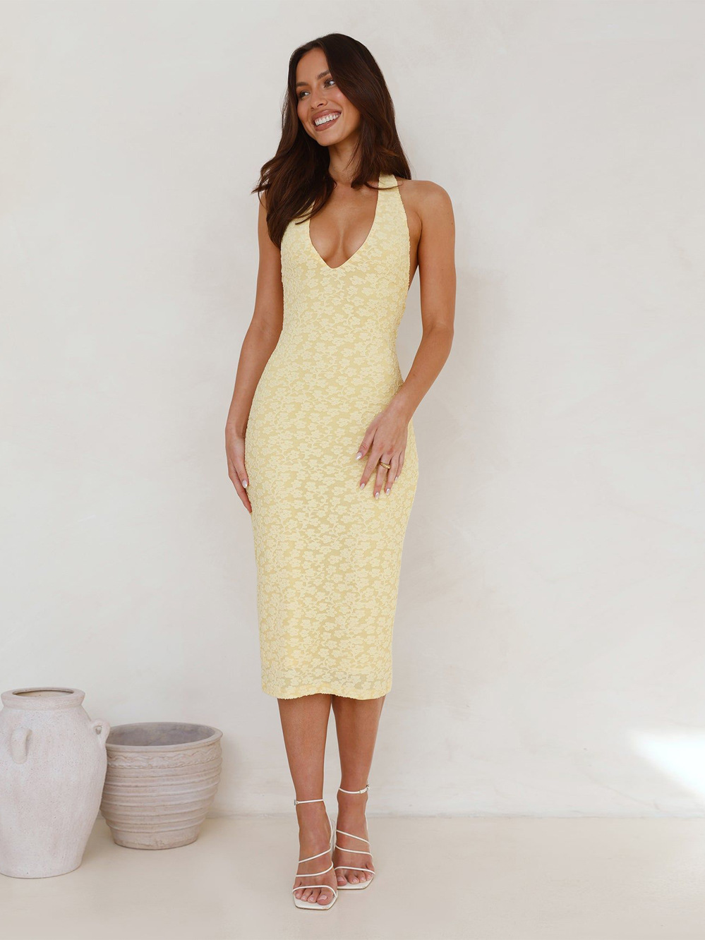Fabric: Polyester Pattern: Lace Design: Halter Neck Set Type: Single Piece Dress Length: Midi Dress Silhouette: Fitted Dress Neckline: V-neck Sleeve Type: Sleeveless Sleeve Length: Sleeveless Waist Type: Mid-waist Trend Elements: Halter Neck Season: Autumn Main Fabric Composition: Polyester (Polyester Fiber) Closure Type: Pullover Style: European and American Style Dress Category: Dress Size: S, M, […]