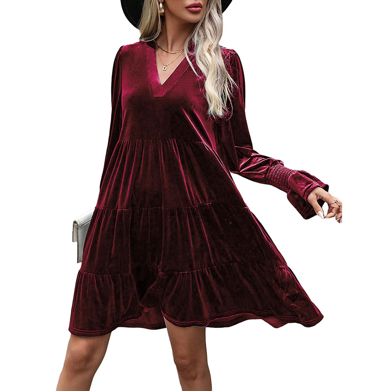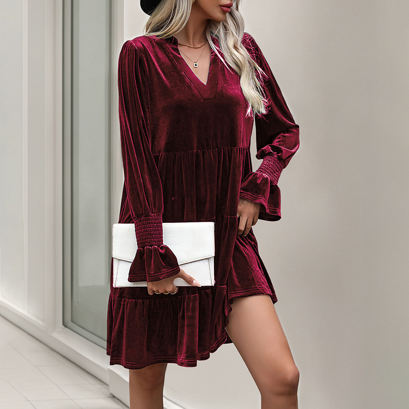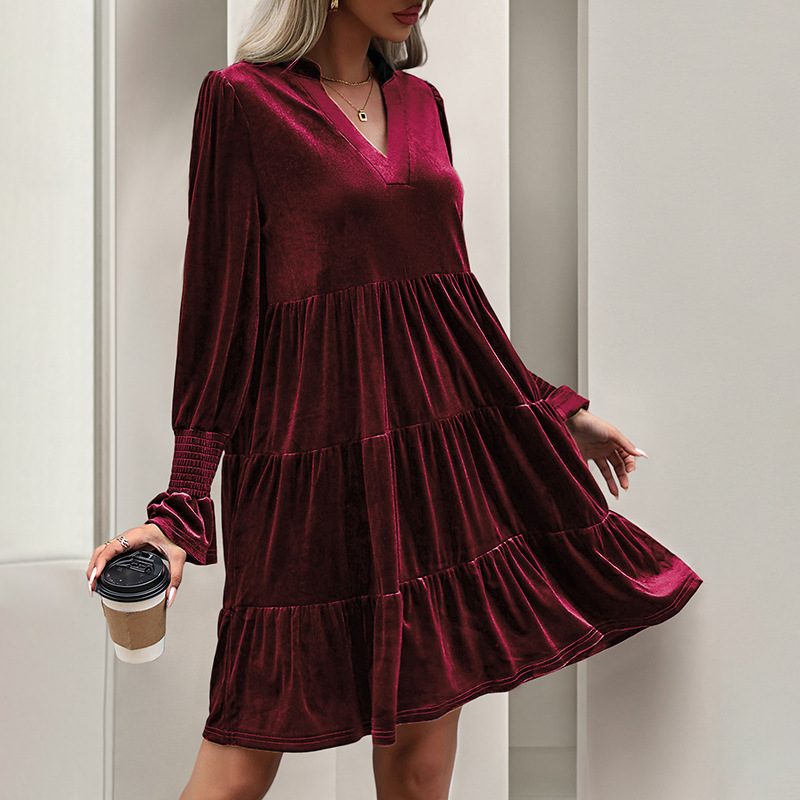 Long Sleeve Spliced Dress Evening Dress Velvet Dress