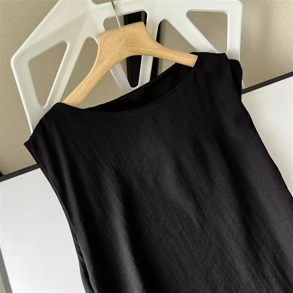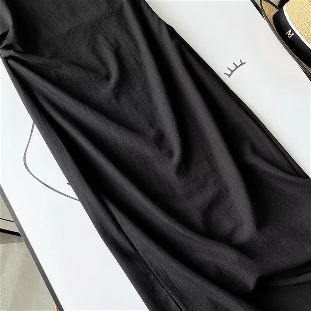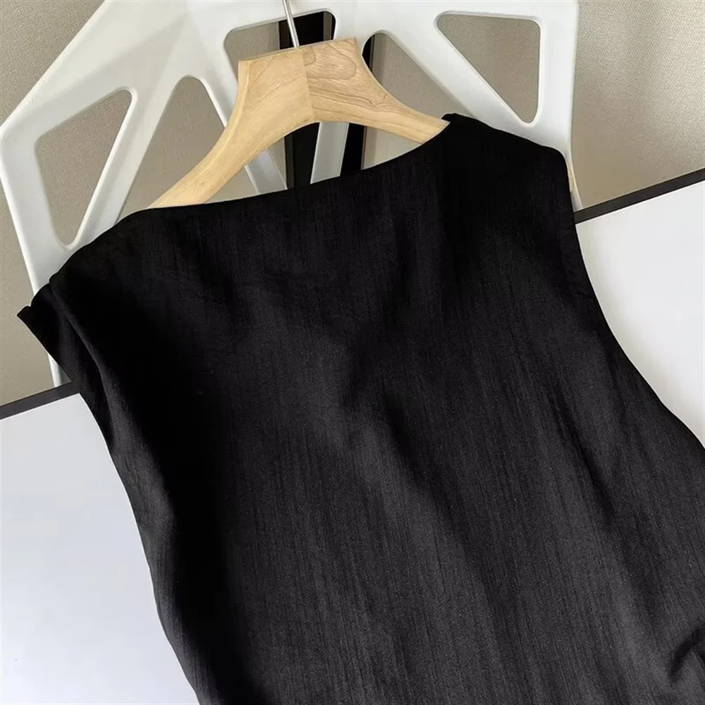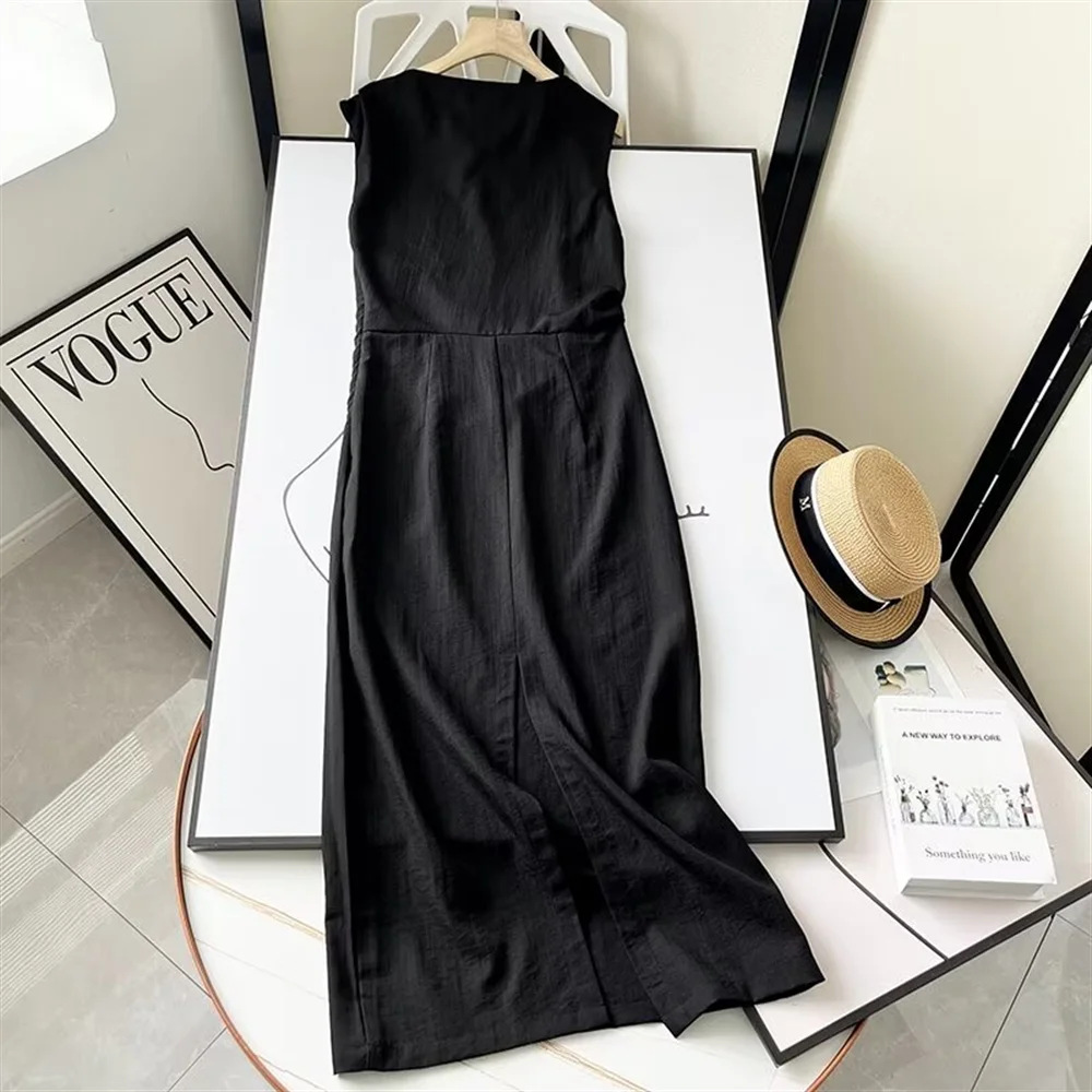-Color: Black -Style: Minimalist style -Pattern Type: Solid Color -Sleeve Length: Sleeveless -Neckline: Round neck -Length: Long skirt -Material: Cotton and linen -Fabric: Cotton and linen -Closure Type: Sleeve -Details: Wrinkles -Fit Type: slim fit – Occasion: party – Gender: Women – Size: unit๏ผCM Size US Size Bust Size Length Shoulder Width waist XS 2 […]
