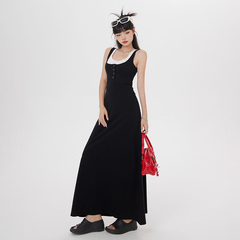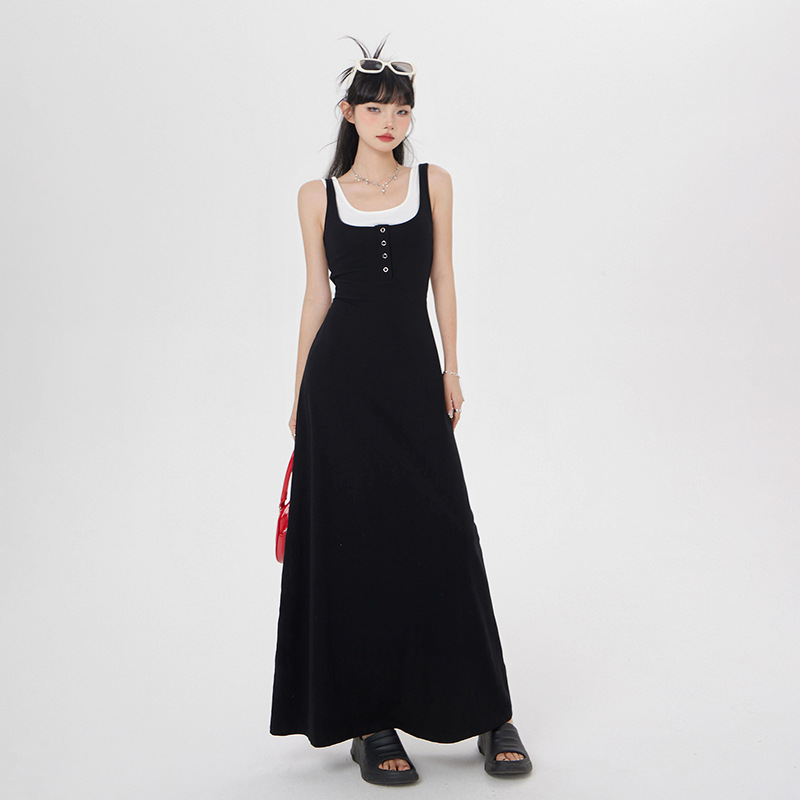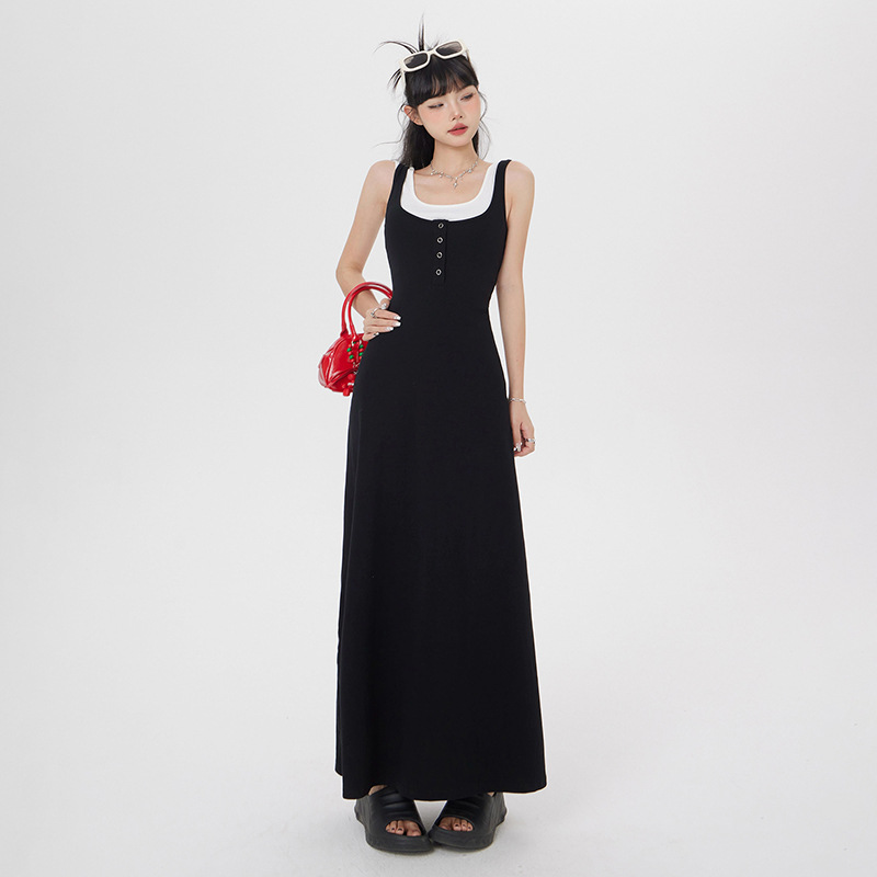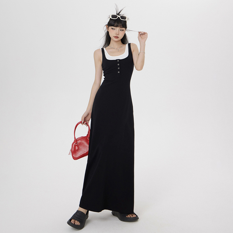 Material: Cotton Pattern: Solid Color Process: Wrinkle-Free Treatment Style: Strapless Combination Form: Fake Two-Piece Dress Length: Long Dress Dress Type: Strapless Dress Collar Type: U-Neck Sleeve Type: Sleeveless Sleeve Length: Sleeveless Waist Type: High Waist Trend Element: Buttons Main Fabric Component: Cotton Secondary Fabric Component: Spandex Color: Black Dress Size: S, M, L Style Type: […]